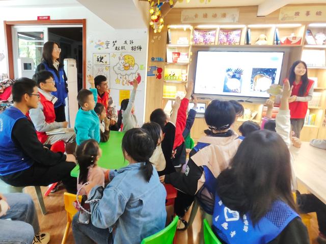 活动伊始,志愿者们采用一对一辅导的形式,带领小朋友们阅读动物相关的绘本,以求激发他们对动物的兴趣。在小朋友们初步了解动物后,志愿者们从鱼类、哺乳类、鸟类三大板块开始进行有关爱护动物的知识学习宣讲。志愿者通过绘声绘色地介绍精彩有趣的图片视频,为小朋友们打开了动物世界的大门。小朋友们轻松认识到,鱼类用鳃呼吸,用鳍游泳;哺乳类体表有毛,哺乳喂养;鸟类有迁徙的习性,身体很轻。有奖问答环节,小朋友们积极举手,踊跃回答问题,向志愿者们展示他们所学,整个空间洋溢着求知的良好氛围。志愿者通过绘声绘色地介绍精彩有趣的图片视频,为小朋友们打开了动物世界的大门。小朋友们轻松认识到,鱼类用鳃呼吸,用鳍游泳;哺乳类体表有毛,哺乳喂养;鸟类有迁徙的习性,身体很轻。有奖问答环节,小朋友们积极举手,踊跃回答问题,向志愿者们展示他们所学,整个空间洋溢着求知的良好氛围。