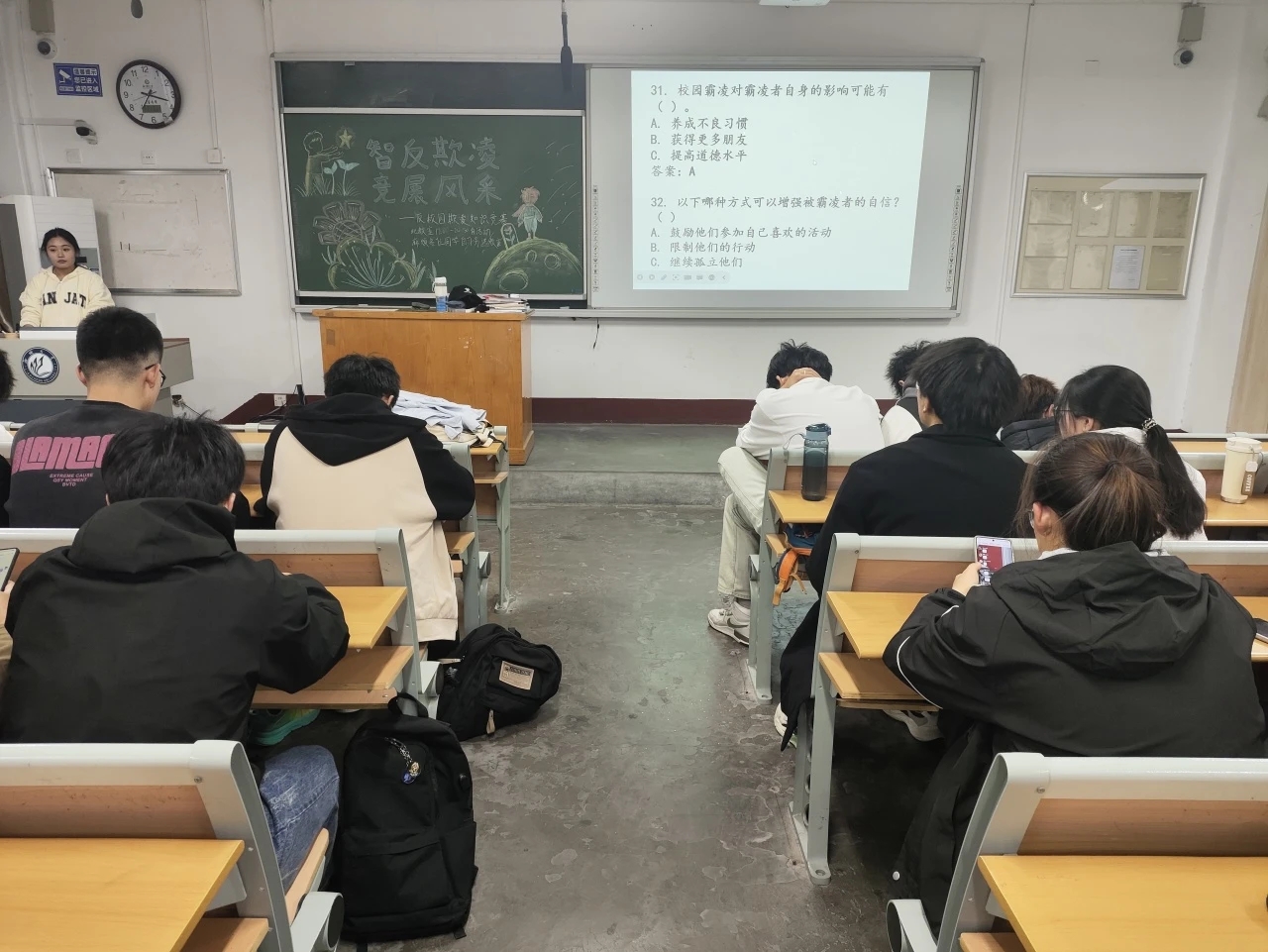 本次活动的顺利举办,不仅有利于提高同学们对校园欺凌的认识,了解校园霸凌的负面影响,在自觉抵制校园霸凌行为的同时,提高自我保护意识和能力,形成浓厚的反校园欺凌的学院氛围,营造安心、安全、和谐的学习环境。