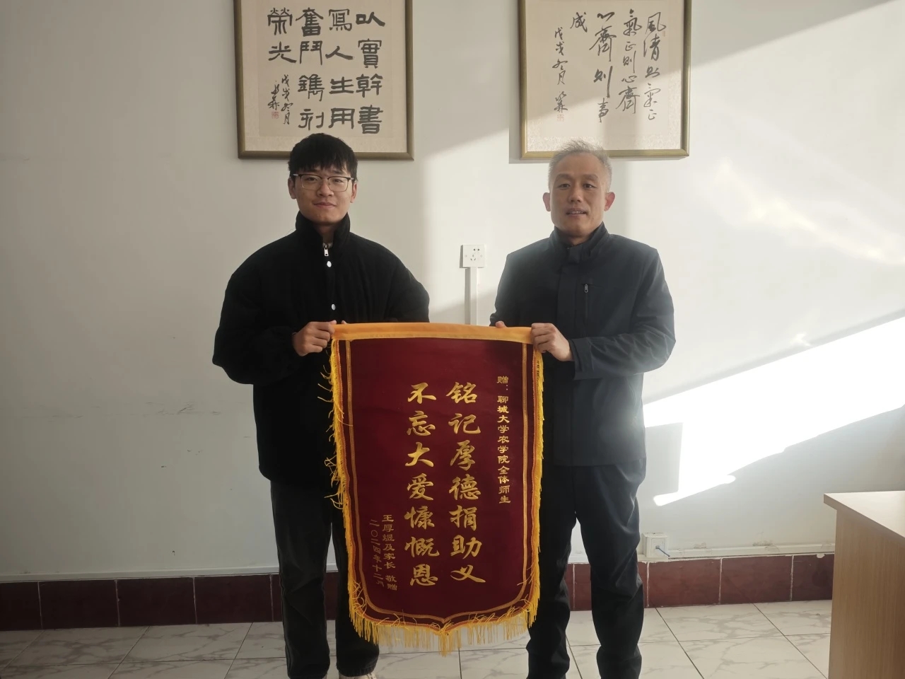 怀着一颗感恩的心,王同学在身体好转后,特意制作了一面锦旗赠予世界杯,以表对爱心捐款的感谢。他感慨道:“在我与病魔苦苦抗争的日子里,仿佛置身于黑暗的深渊,是学院这片温暖的港湾,是老师们同学们如同灯塔般的守护,让我重新看到了希望的曙光,学院不仅仅是我求知的殿堂,更是我在困境中最坚实的依靠。”而接收锦旗的美加墨世界杯官方网站党委副书记、副院长吴洪宇也表示:“王同学在与病魔的抗争中得胜归来,这是我们最欣慰的事,命运赐予的磨砺并不可怕,学院永远是同学们最坚实的后盾。”