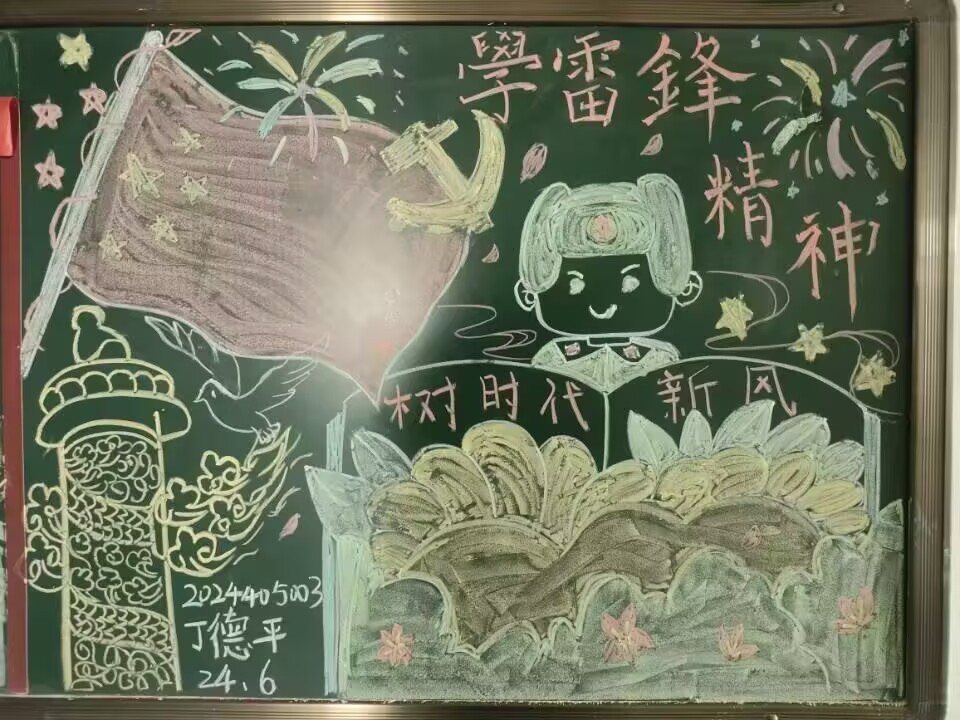 在整个创作过程中,同学们相互交流、讨论,不断完善细节。遇到问题时,大家一起出谋划策,齐心协力攻克难关。同学们为了突出主题,反复修改色彩搭配;为了让构图更加合理,多次调整板块布局。经过同学们的努力,一幅幅饱含着同学们对雷锋精神理解与敬意的黑板报精彩呈现,他们的作品不仅让黑板变得五彩斑斓,更让雷锋精神在同学们心中生根发芽,激励着大家在日常生活中积极践行雷锋精神,争做新时代的优秀青年。