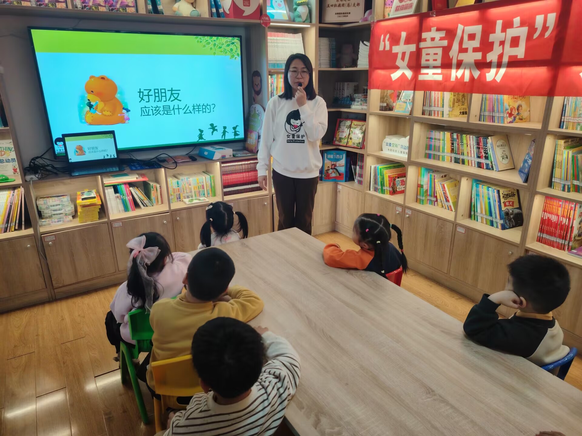 活动开场,志愿者们借助色彩鲜艳的生动图片和活泼有趣的动画,深入浅出地为小朋友们讲解了水果蔬菜中富含的维生素、矿物质,以及这些营养元素对人体发育的重要作用。小朋友们的目光紧紧锁定在屏幕上,眼中闪烁着好奇与求知的光芒,踊跃举手回答问题,现场互动氛围热烈,充分展现出他们对果蔬知识的浓厚兴趣。