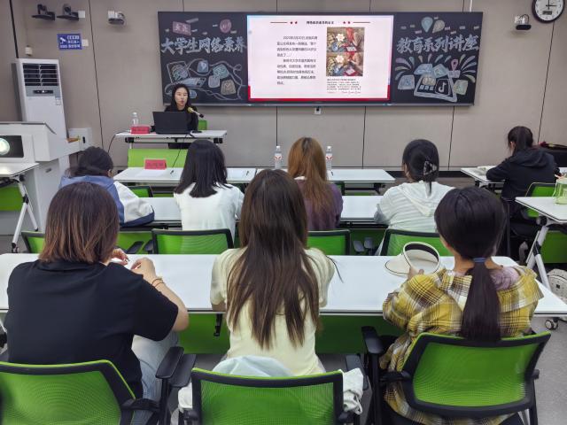 韩亭亭从网络政治认知、政治情感、政治意志、政治行为四个维度入手,深度剖析当代大学生网络政治素养的形成过程。接着结合具体案例,生动阐述了网络政治素养对大学生成长的重要意义,引导在座大学生坚定正确的政治立场,思辨地看待网络信息。她提出,要深化政治认知,坚定党的领导,提升个人网络政治素养,共同维护良好的网络环境。