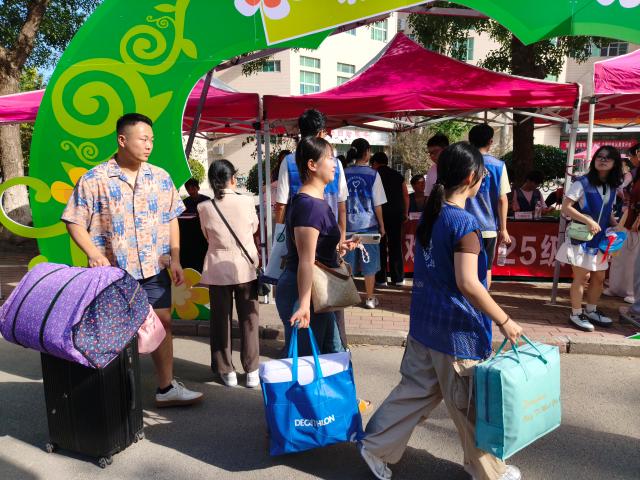 在新生完成报到后,志愿者们引领他们前往宿舍楼领取宿舍钥匙、卧具,并协助填写登记表,精心做好新生宿舍安置工作。随着迎新活动的圆满落幕,2025级新生正式开启了他们的大学生活新篇章。