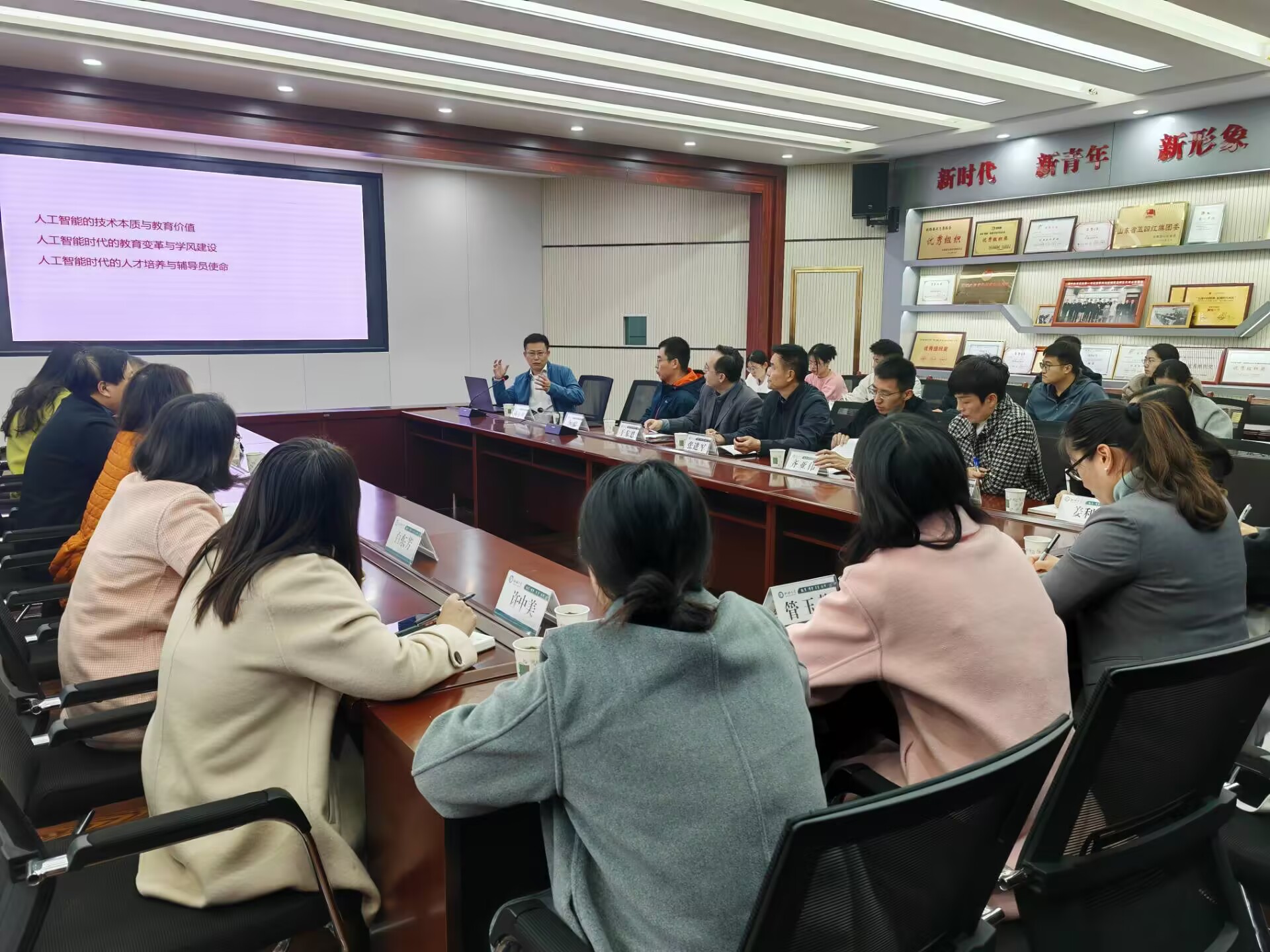 为深入探讨人工智能与高校学风建设之间的联系,积极探索在新时代、新科技环境下人工智能与高校学风建设的融合路径,推进世界杯思想政治教育创新发展,11月13日上午,美加墨世界杯官方网站2024年第10期辅导员沙龙活动在东校区辰晖楼二楼会议室成功举办。本次沙龙活动由党委工作部(处)主办,由设立于世界杯的两个辅导员工作室——美加墨世界杯官方网站“学海导航”辅导员工作室和美加墨世界杯官方网站“书香稼穑”辅导员工作室联合承办。活动由美加墨世界杯官方网站党委副书记、副院长吴洪宇主持,党委学生工作部(处)长都超以及30余名辅导员参加了沙龙活动。