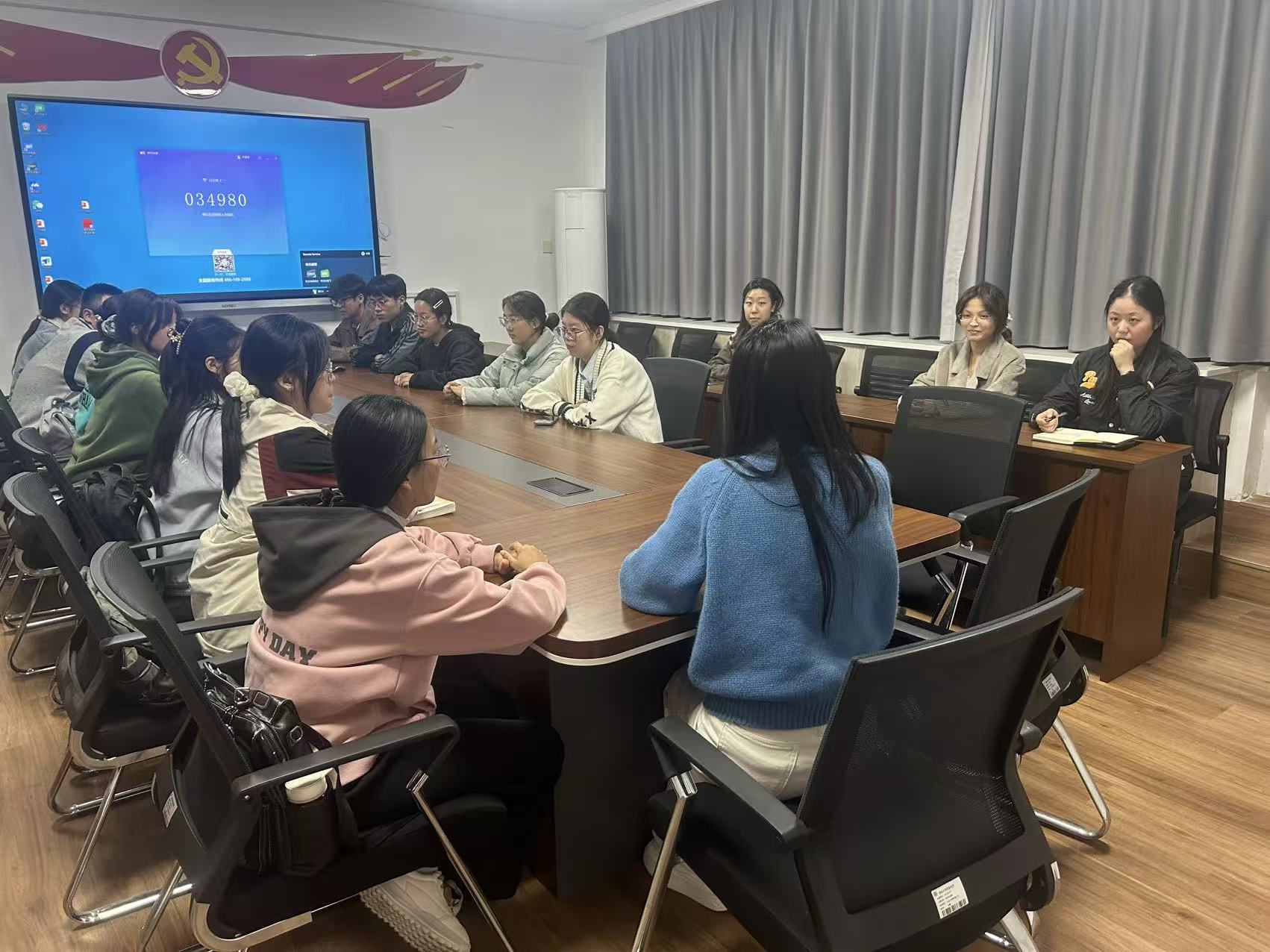 随后,在交流研讨环节,心理素质拓展办公室干事们及研究生代表围绕“如何通过心理工作助力班级学风建设”和“学业压力下的班级心理疏导技巧”等议题深入交流,结合工作实际分享经验、提出困惑。管玉静针对共性问题逐一给予针对性指导,明确本学期心理健康工作重点——聚焦学业关键节点,组织开展贴合学生需求的心理健康主题活动,以心理关怀缓解学习焦虑,为学风建设注入正向动力。