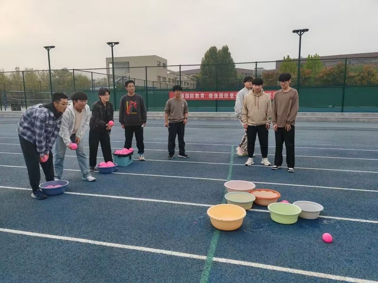 紧接着的“躲避沙包”项目,不仅趣味十足,而且寓意深刻,模拟了高空抛物的安全隐患。参与者们全神贯注,眼疾手快地躲避沙包,你来我往,乐在其中。同时,这一项目也让同学们深刻认识到高空抛物对生命安全的巨大威胁,提高了安全防范意识。