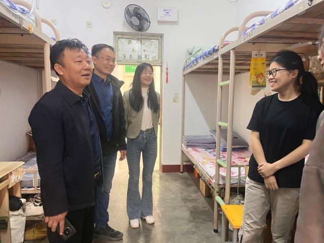 走访过程中,学院领导、老师们仔细了解了同学们的生活及学习情况,认真听取了同学们的实际需求和建议,并对同学们提出的问题进行答疑解惑。邢晓峰表示,宿舍不仅是学生生活的场所,更是学习的第二课堂。同学们应当营造良好宿舍舍风,互相学习、彼此促进,将宿舍转化为一个学习与成长的“加油站”。