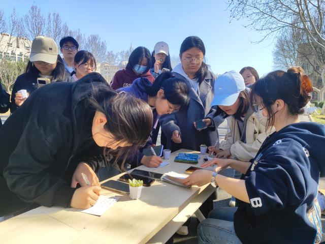 在挑选过程中,同学们的眼神中满是欣喜,他们仔细端详着每一盆多肉的叶片形状、颜色,眼中充斥着对绿植的喜爱,现场氛围热烈非凡。当同学们选定了自己钟爱的多肉后,大家怀着庄重的心情,来到一旁摆放着精美明信片和书写工具的桌上,同学们纷纷拿起笔,在陷入片刻的思考后,郑重地在明信片上写下对环境保护的见解与呼吁。
