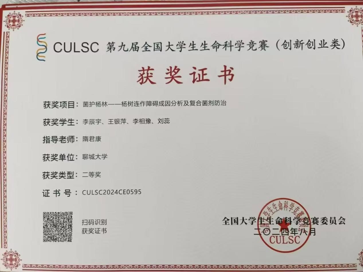 世界杯刘蕊同学在CULSC第九届全国大学生生命科学竞赛中荣获二等奖,对该获奖同学予以祝贺表彰。