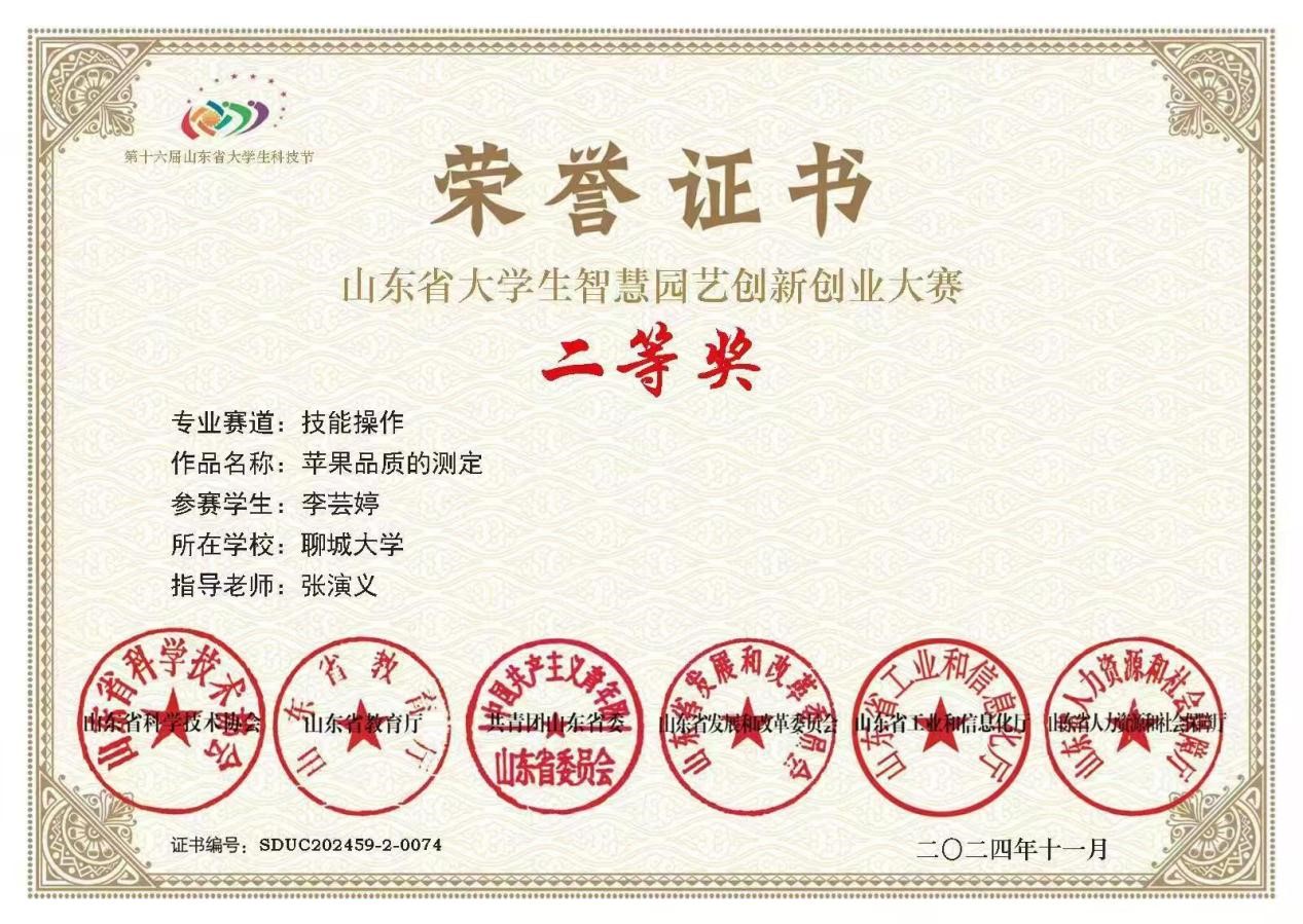 世界杯李芸婷同学在山东省大学生智慧园艺大赛中荣获二等奖,对该获奖同学予以祝贺表彰。