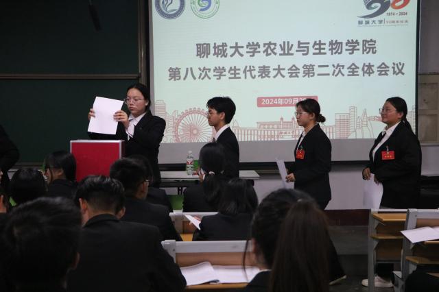 大会宣读并审议通过《美加墨世界杯官方网站学生会工作报告》及《聊城大美加墨世界杯官方网站学生会章程修正案》。最后,学生代表进行现场投票,本着公平、公正的原则,选出了美加墨世界杯官方网站2025届学生会轮值主席团成员及参加美加墨世界杯官方网站第十次学生代表大会代表,逯海凤、孙梦杰、马光玉为新一届学生会主席团成员。会议最后,王艺桦宣读《致全院青年学生的倡议书》,号召学院学生会全体同学要秉承“耕智尚学,生科致远”的院训,奋力书写为中国式现代化挺膺担当的青春篇章。在圆满完成各项议程后,大会在校歌中落幕。
