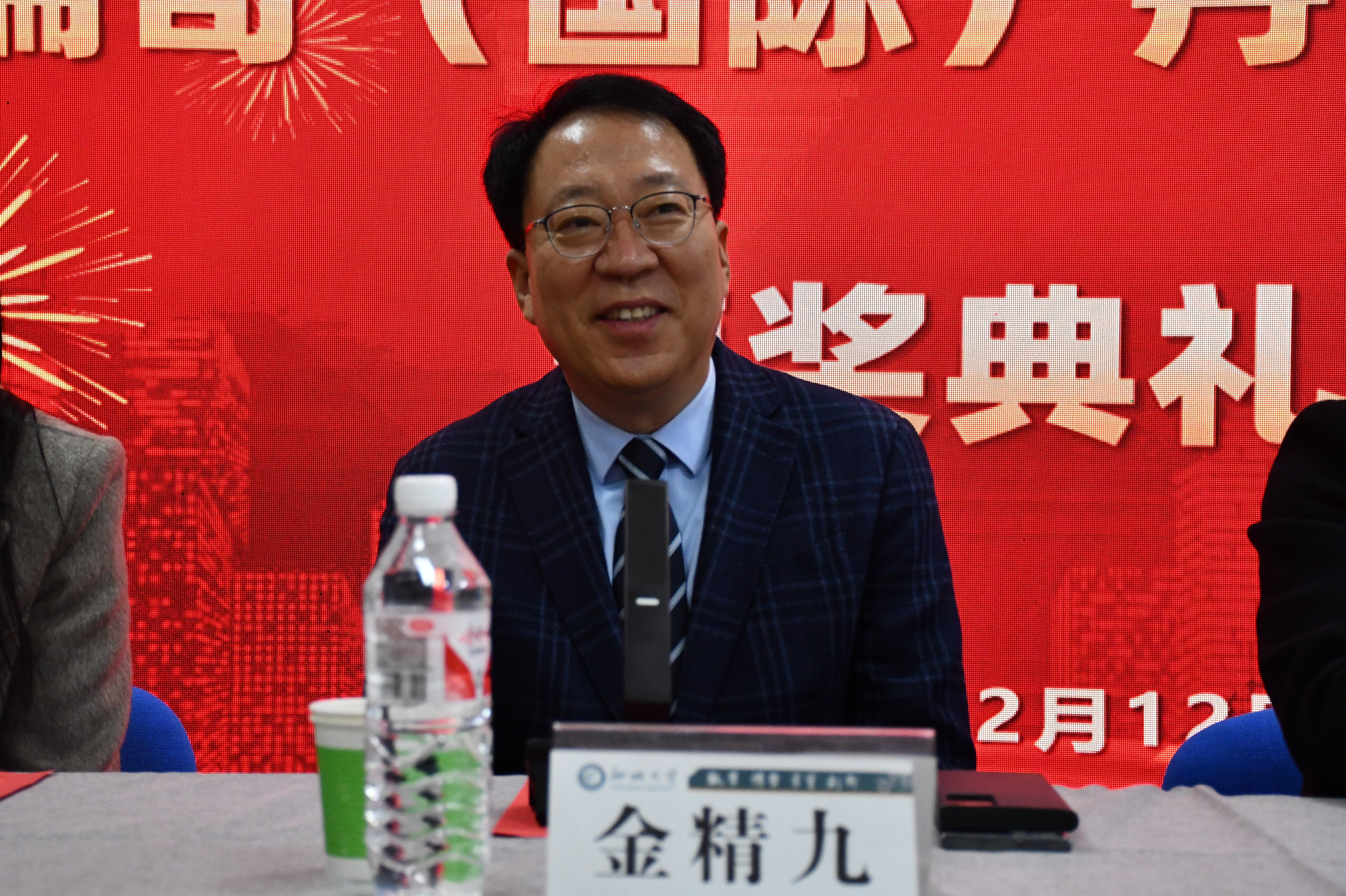 吴洪宇主持仪式并宣读获奖学生名单。金精九、姜英姬、崔馨予等企业代表和都超、贾泽峰共同为获奖学生颁奖。