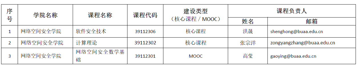 网安学院2021年研究生核心课程建设项目推荐情况公示