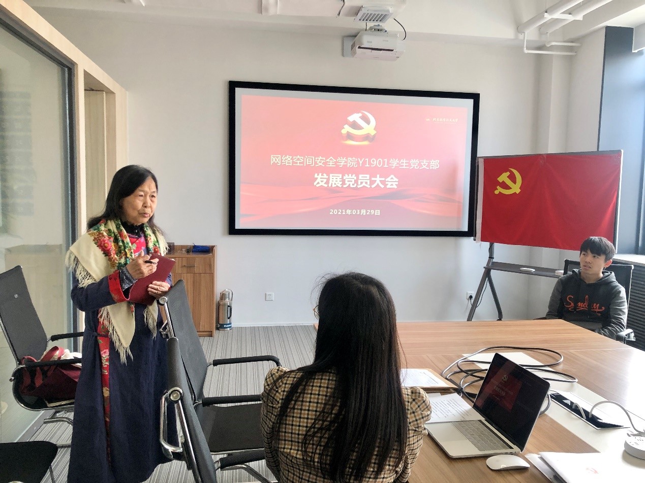在会议的最后,邓彦敏老师针对本次发展大会发表了自己的看法。邓老师对此次党员发展大会的前期准备、会议流程等工作给予了充分的肯定,但针对与会党员未积极地充分发表意见指出了支部在批评与自我批评方面仍存在经验欠缺的问题。邓老师还强调,今年是建党百年、是“十四五”规划的开局之年,4名同志在此时入党具有更为深刻的意义。此外,邓老师呼吁支部全体党员同志抓住建党百年的重要契机,积极扩展自身对党的理论知识学习的广度和深度,以扎实的专业知识为国家和人民创造财富,为祖国的建设添砖加瓦!