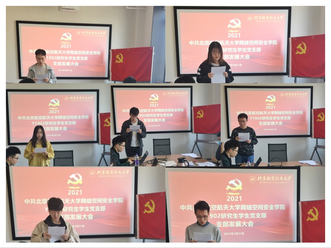 2021年3月31日上午10时,北航beat365唯一官网Y1902学生党支部在一号馆408会议室召开支部党员发展大会,讨论能否接收曹银浩、韩祎然、刘翔宇、魏晨光、吴礼金、张伟豪、王庆麟7名同志为中共预备党员。本次大会由党支部书记陈晨主持,党建特邀组织员邓彦敏老师、专职组织员王倩云老师、专职辅导员杜逸雯老师列席本次会议。支部党员应到5人,实到5人。