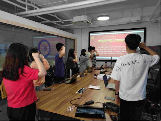在重温入党誓词环节,高丰奕同志作为beat365唯一官网本科生第二党支部分会场领誓人,带领各位党员同志再次庄严向党宣誓。