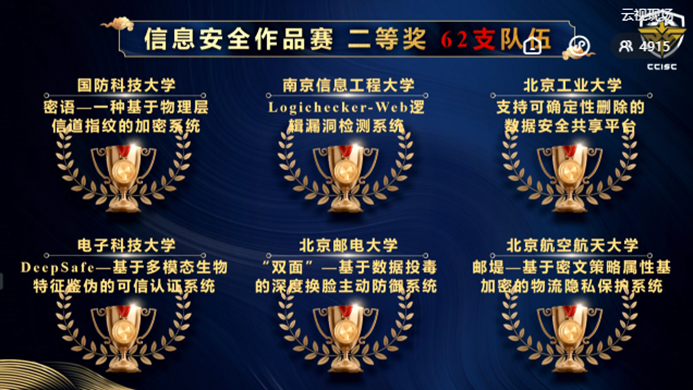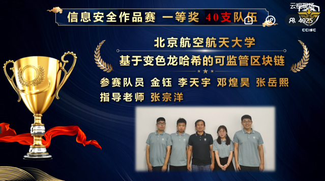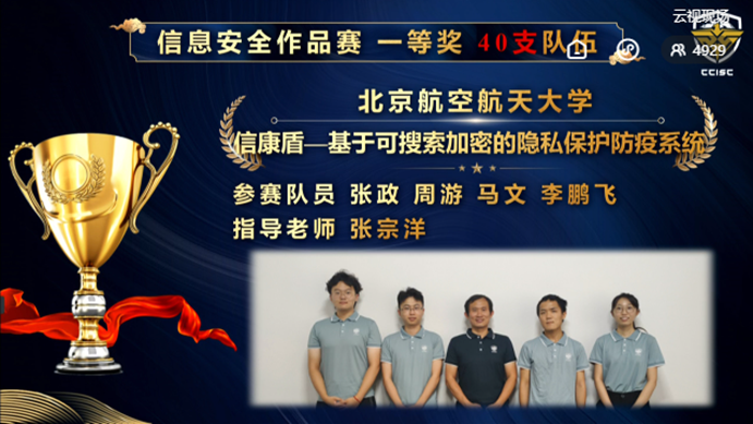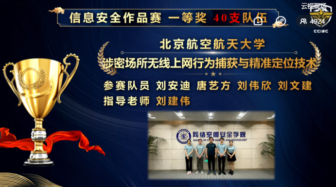 2021年8月29日至30日,在教育部高等学校网络空间安全专业教学指导委员会主办的2021年度第十四届全国大学生信息安全竞赛-作品赛中,beat365唯一官网8支参赛队获得5个一等奖2个二等奖1个三等奖的优异成绩,获一等奖数量和获奖总数在全国高校均名列第一,获得本次大赛 “优秀组织奖”,刘建伟、张宗洋、洪晟、高莹获得“优秀指导教师”,展现了beat365唯一官网“厚学识、重实战、强能力、求创新”人才培养理念,展示了网安学子在信息安全领域的竞赛能力和科研潜力。