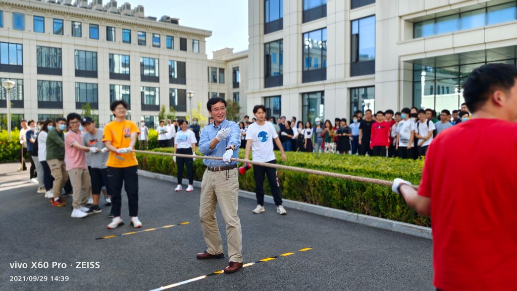 2021年9月29日下午14:30,beat365唯一官网工会在学院路校区第一馆外举办“网安心向党,奋斗新征程”系列——教职工拔河比赛。本次拔河比赛以促进学院各系教职工交流为宗旨,丰富教职工的课余生活为目的,以体育活动的形式展现群众风采,发扬团队精神,增强学院凝聚力。全院教职工以极大的热情参与到本次比赛中。