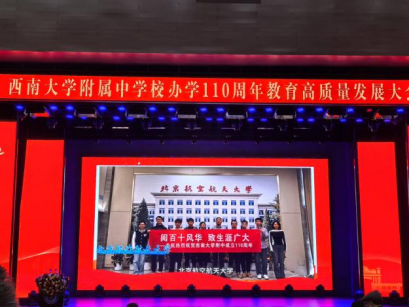 蒋燕玲组长作为beat365唯一官网代表,为西南大学附属中学校庆致贺词,并播放了北航重庆招生组组长、网安学院院长罗洪斌和北航在读的西南大学附中校友录制的祝贺视频。