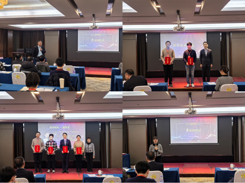 大会伊始,罗洪斌院长对2024年的工作进行了全面的回顾和总结,对在学术研究、教学工作、学生竞赛等方面表现突出的师生予以高度认可。在热烈的掌声中,学院领导班子先后对学院2024年度考核优秀教师、教学标兵、科研标兵、服务标兵等先进个人领奖。院长罗洪斌和党委书记蒋燕玲还特别颁发了学院2024年度“建院元老”奖杯,以感谢刘建伟老师和刘连忠老师为学院的建立和建设做出的突出贡献。党委书记蒋燕玲做总结讲话,她表示,2024年学院取得的成绩是全院师生共同努力的结果,更是全体教职工不断改革创新、锐意进取、共谋发展的成果,并向学院教师致以衷心的感谢和新年的祝福。