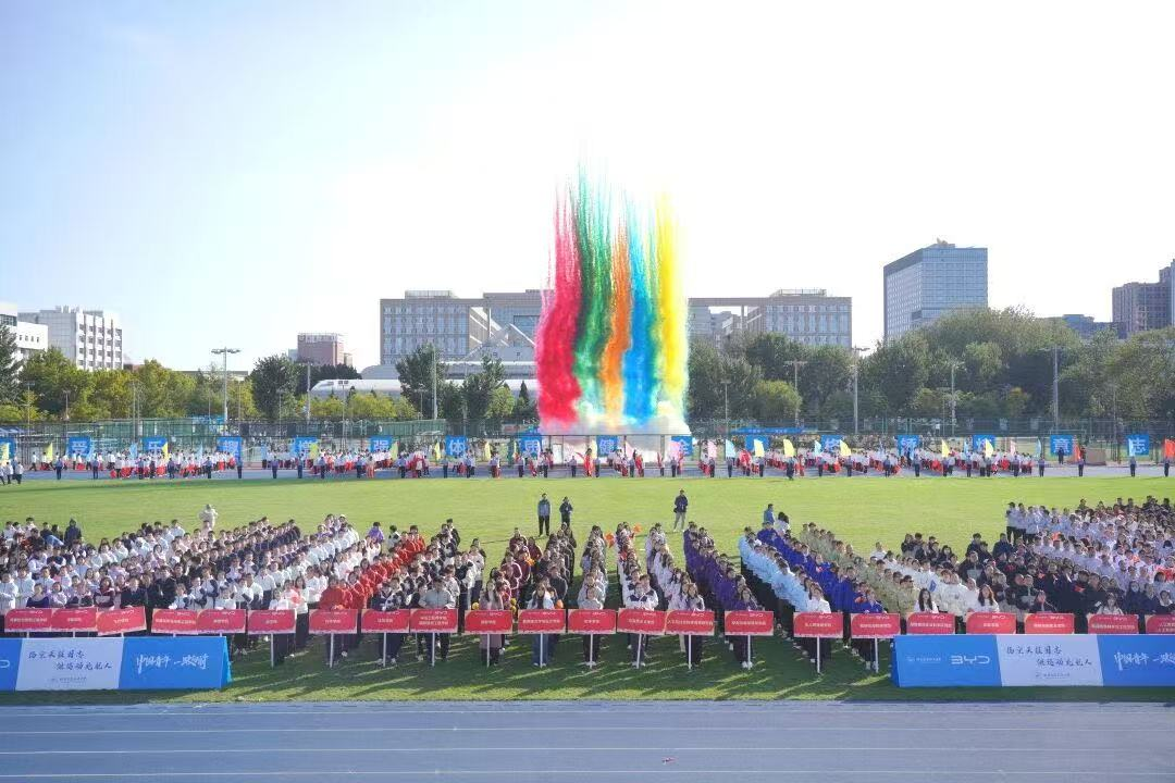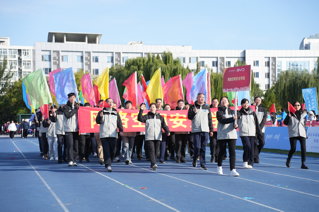 上午8时30分,当开幕式进行曲响彻云霄,网安学院方阵在党委书记蒋燕玲和院长罗洪斌的带领下整齐有序地步入赛场。