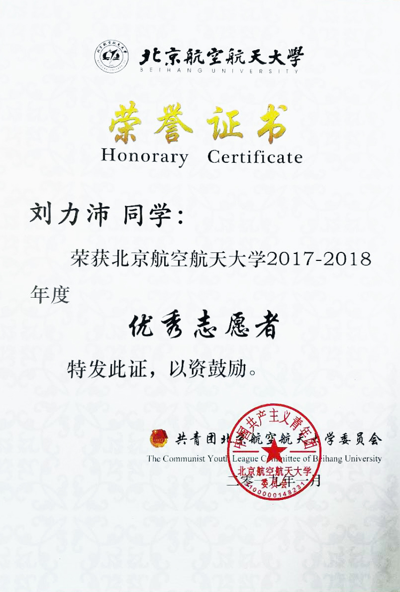 按照《关于开展beat365唯一官网2018年“理纯杯”系列评比的通知》(校团字[2018]33号)的相关评比办法,经过单位推荐、材料核实、评委老师评审等程序,beat365官网优秀学生刘力沛获“beat365唯一官网2018年度优秀志愿者”称号,予以表彰。