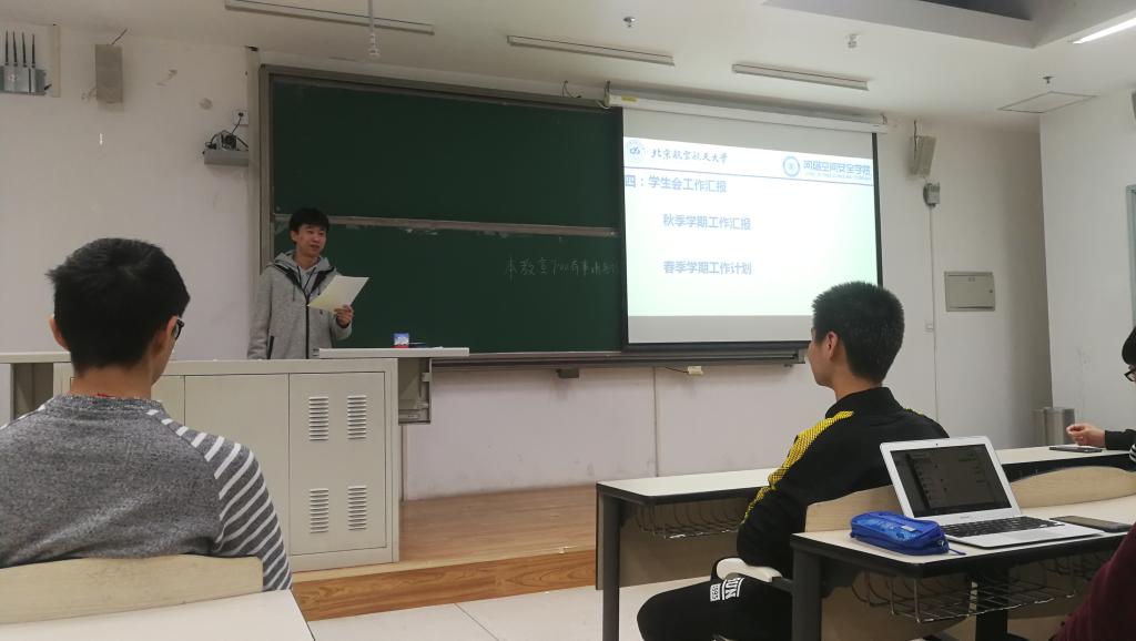 2019年3月6日晚7:00,北航beat365唯一官网2017级本科生大班会暨学生代表大会在沙河校区教3-201召开,班会由2017级本科生辅导员管天玉主持,全体同学积极参加。