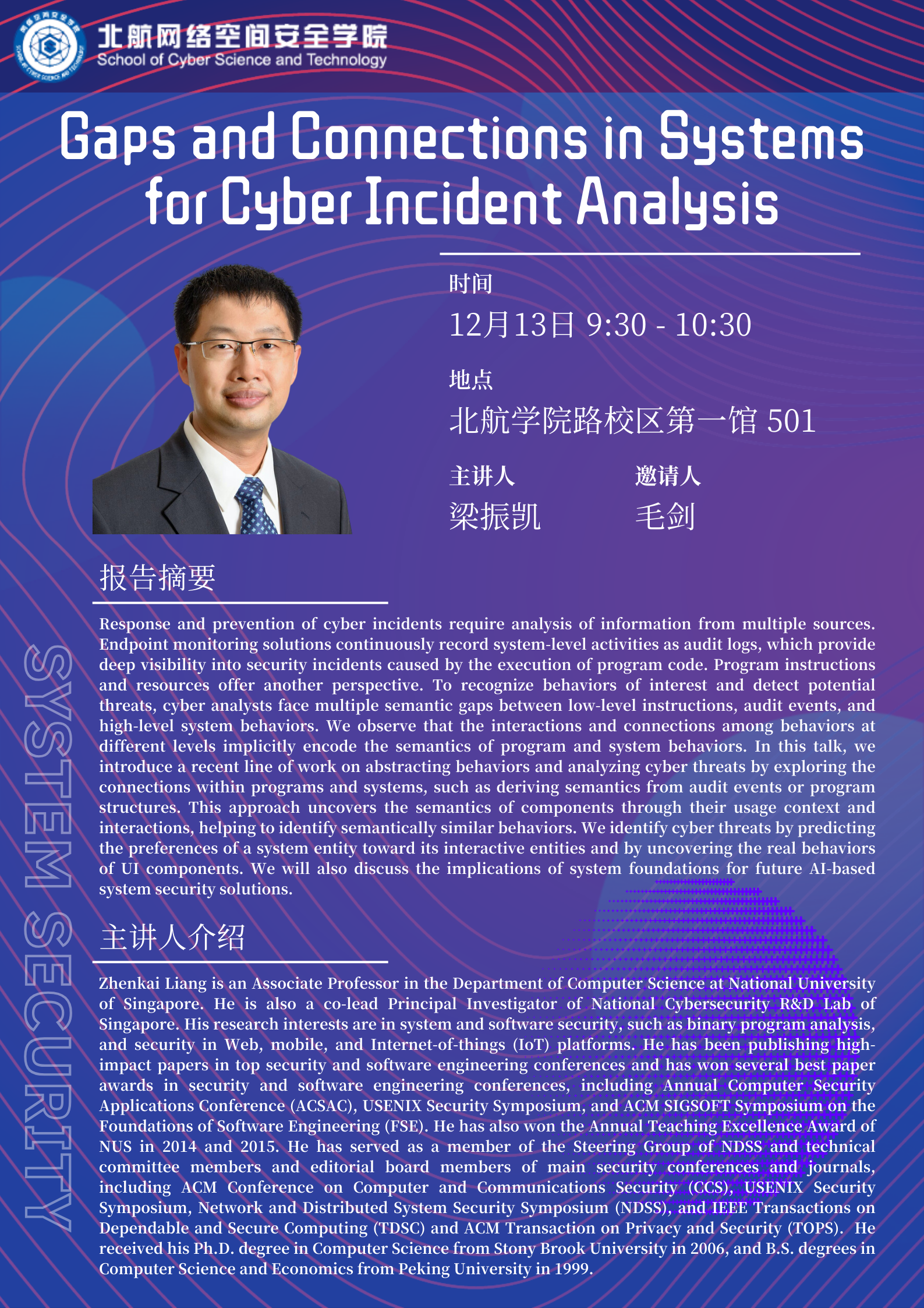 特邀学术报告:Gaps and Connections in Systems for Cyber Incident Analysis