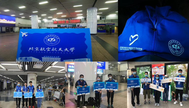 陈洁如:又是一年迎新季,今年,我成为了穿着蓝色小马甲和绿色工作服的人。凌晨五点,在手机的震动中逐渐清醒,熹微的晨光给这一天拉开了序幕。这是2020届本科生报到的第一天,这一天的我是一名激动的志愿者。因为今年的特殊情况,为了减少人员在大量场所的流动,学校在机场、火车站、地铁站共八个站点设立了接站点,大巴循环发车,将初来乍到的新同学径直介入校园,我的职责便是在北京站引导与跟车。志愿者们先是去知行楼领取物资,清单写了满满一面,今年还有因疫情而多出来的一小箱卫生用品。而后,大巴便把我们送到了北京站。在大巴上吃餐包的场景,让我又想起了国庆联欢的日子。到达北京站后,我们先安装易拉宝、扎帐篷、布置引导牌,准备工作做好不久,便迎来了第一位新生,而后是第二位,第三位……这些和我们年龄相差并不多的学弟学妹带着刚刚离开高中生活的稚气,懵懂又期待的目光,奔向他们的大学生活。检查过每位同学的录取通知书、返航通行证再测过温,就可以上车放置行李了。重复着这样的流程,车上的位置逐渐填满。家长们不能上车,有的家长向我们询问相关的防疫政策与交通方法,我们也细心告知,目送他们将孩子送上车后,转身走向地铁,只为去看一眼孩子的校门。时间过得很快,上午发走了三趟车,我也作为随车志愿者上了二号车,跟车衔接。将学弟学妹们送到学院路和沙河后,他们就被交到校内志愿者的手中了。这一天很疲倦却也充实,尤其是充满着一种温情。两年前我是他们,带着期待来到北航;两年后我成了当初的“他们”,情感就这样一届又一届传承。参与迎新工作真的是一件很幸福的事情,我又想起培训时老师说的:“记住,你们是他们见到的第一个北航人。”