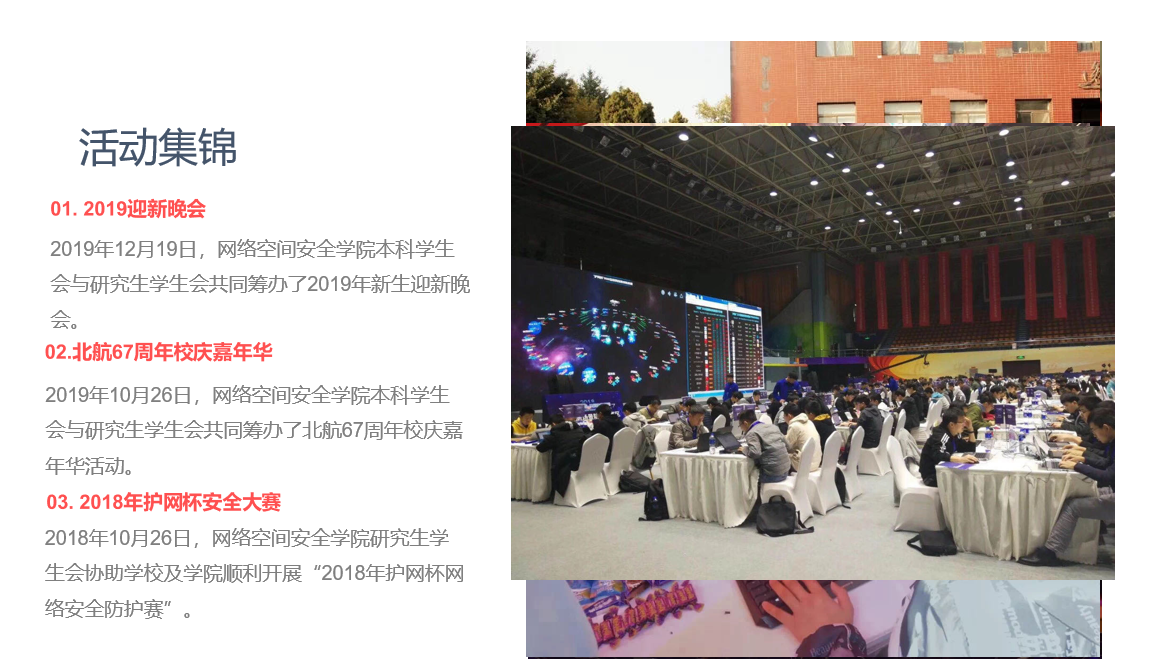时维九月,序属三秋。2020级研究生新生们已经正式加入了北航网安学院的大家庭。值此新生入校之际,beat365唯一官网研究生学生会于2020年9月23日晚上9:30举行了秋季线上招新宣讲活动,分团委书记管天玉、2019届研会主席郑子翔,2020届研会主席陈春林参加本次会议。