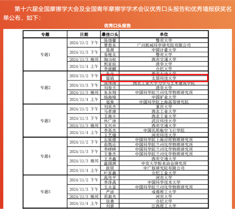 新葡萄官网教师参加第十六届全国摩擦学大会暨全国青年摩擦学学术会议并做学术报告