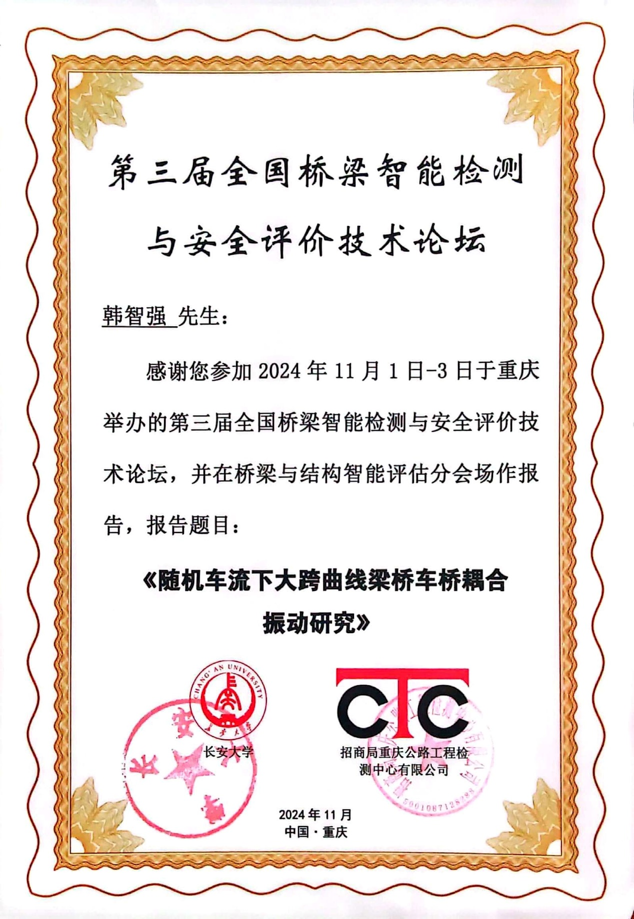 新葡萄官网智慧交通研究所所长韩智强副教授应邀做学术报告,并担任 “桥梁与结构智能评估” 分论坛主持人。